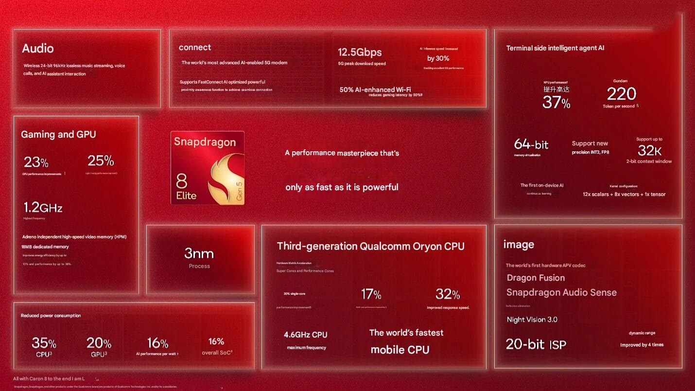 Mas as melhorias não param por aí. A nova GPU Adreno adota uma arquitetura fatiada e apresenta 18 MB de cache dedicado, o que resulta em um aumento de 23% no desempenho e uma redução de 20% no consumo de energia durante o jogo. Ela também suporta totalmente os incríveis recursos do Unreal Engine 5, incluindo as tecnologias Nanite e Lumen. Para os criadores profissionais e amantes da fotografia, a nova plataforma apresenta o codificador APV (Advanced Professional Video) para uma qualidade de vídeo quase sem perdas e possui um ISP triplo de 20 bits que quadruplica o intervalo dinâmico. A nova tecnologia Dragon Fusion, uma colaboração com a Arcsoft, cria um pipeline de vídeo fotográfico totalmente computacional.