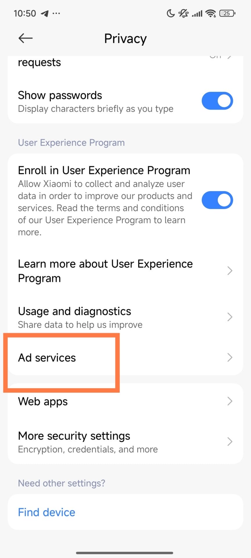 Para obter um guia mais detalhado, siga nosso guia de desativação de anúncios no Xiaomi HyperOS.