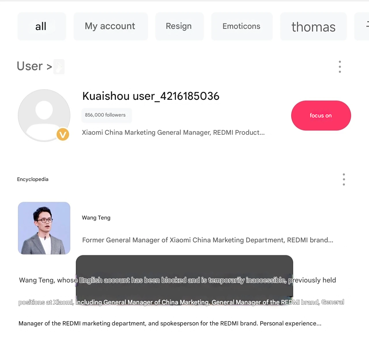 Após o anúncio oficial da demissão, houve mudanças observáveis e notáveis na presença pública de Wang Teng nas mídias sociais em várias plataformas chinesas. As mudanças indicam uma rápida remoção do envolvimento público ou um afastamento voluntário da vida pública após a decisão da empresa. Isso geralmente acontece quando um executivo de alto nível sai nessas circunstâncias específicas, refletindo uma clara ruptura com sua função anterior voltada para a empresa.
