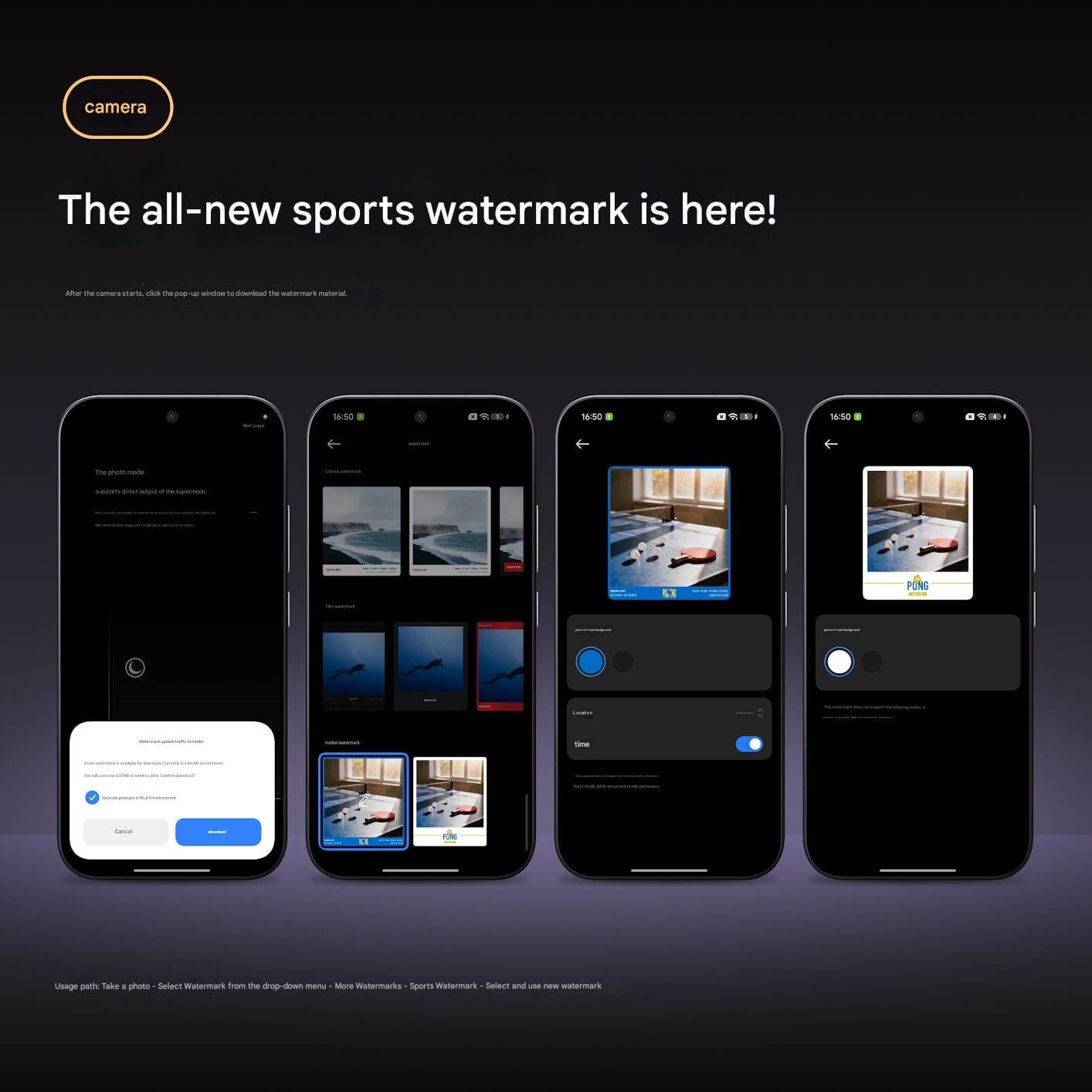 A funcionalidade de marca d’água de movimento oferece aos usuários a capacidade de sobrepor efeitos visuais animados em fotos e vídeos, mesclando os dois aspectos da incorporação de metadados, que são arte e tecnologia. O serviço dá a cada foto sua própria identidade, o que é especialmente importante para quem viaja pelo mundo, criando conteúdo ou simplesmente capturando os momentos e o ambiente ao seu redor.