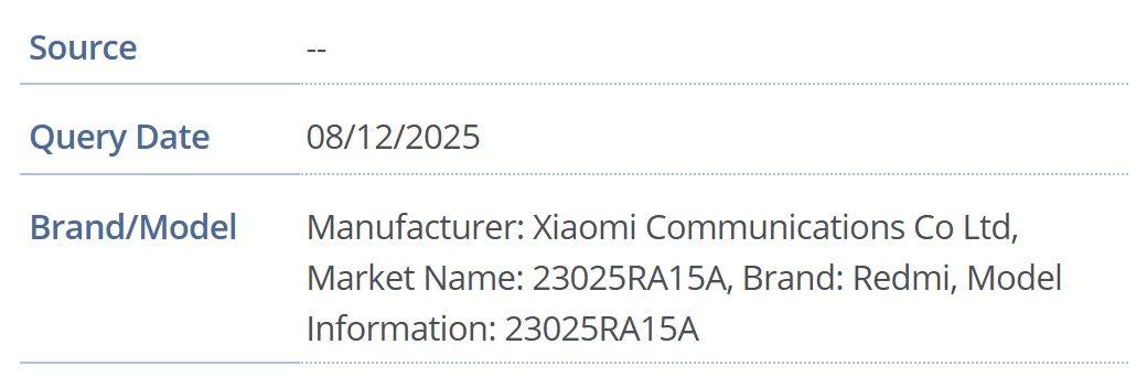Além disso, a Xiaomi planejou inicialmente esse dispositivo para um amplo lançamento regional, incluindo Global, EEA, Turquia, Indonésia, Taiwan, Rússia e China. No entanto, apenas um número de modelo, 23025RA15A, foi registrado no banco de dados da GSMA, onde o código de região “A” indicava o mercado global.