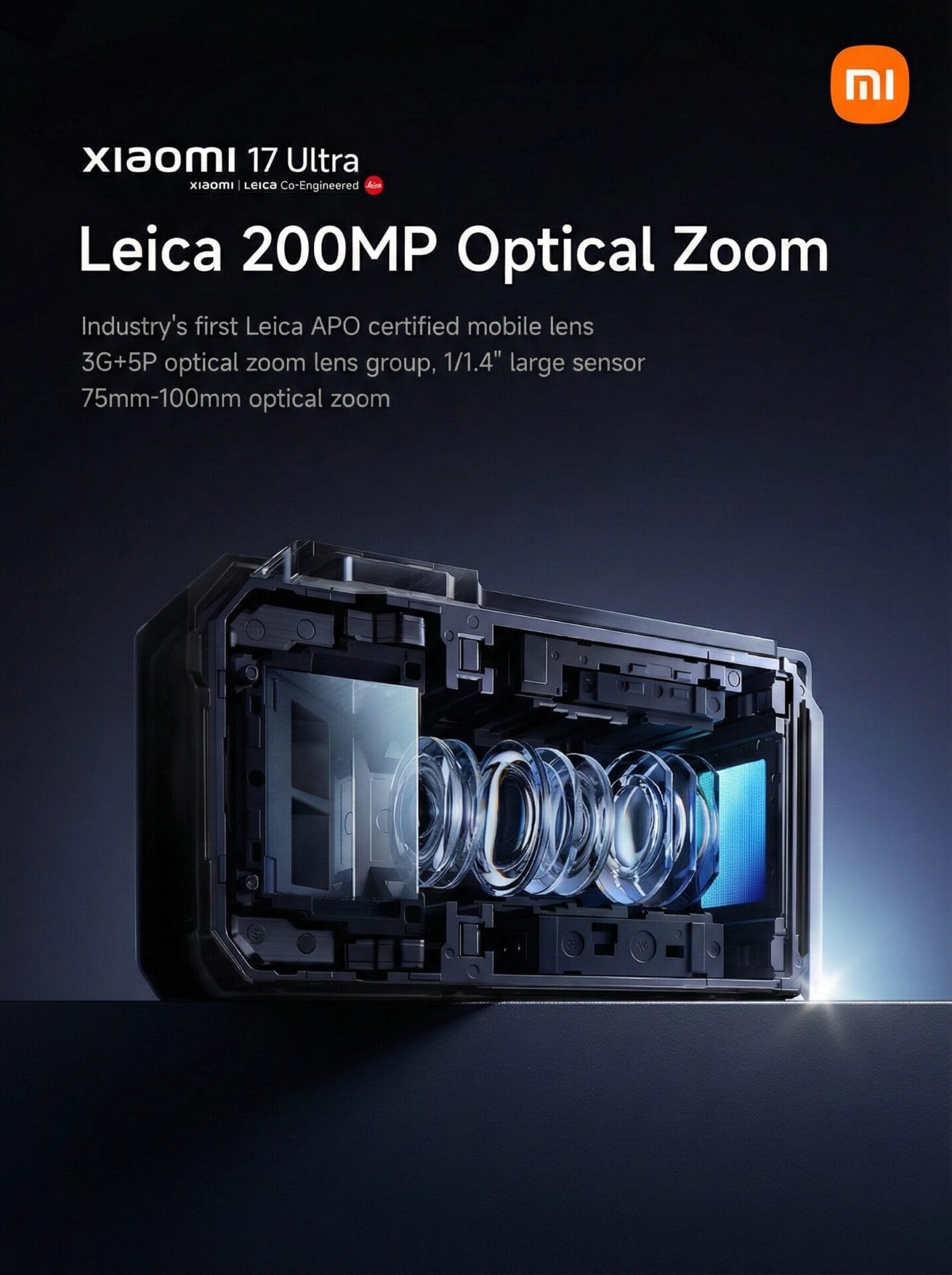 A Xiaomi confirmou que o Xiaomi 17 Ultra contará com uma câmera Leica de 200 MP com zoom óptico real, a primeira do setor, o que representa um marco na geração de imagens em dispositivos móveis. Vários detalhes foram compartilhados nos canais oficiais da Xiaomi, que anunciou o novo sistema de telefoto sem depender de corte digital, oferecendo saída óptica total. O anúncio sela ainda mais a parceria de longo prazo da Xiaomi com a Leica, apontando para sua ênfase contínua na engenharia óptica da marca.
