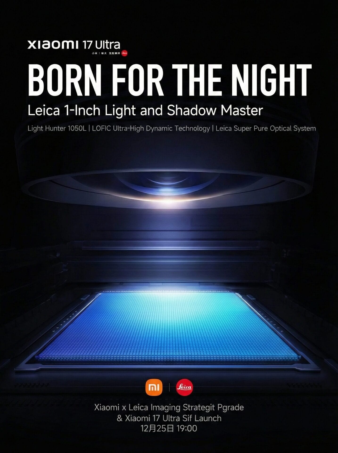 Além da lente teleobjetiva, a Xiaomi 17 Ultra também é equipada com uma câmera principal Leica de 1 polegada, combinada com o sensor Light and Shadow Hunter 1050L. A Xiaomi combinou a tecnologia de faixa dinâmica ultra-alta LOFIC, que permite uma faixa dinâmica melhor em um único quadro, obtendo assim uma exposição excelente em cada foto, mesmo em cenários com pouca luz.