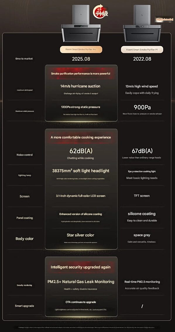 O Purifier Pro é equipado com um protetor de gás integrado, que fornece alertas de vazamento em tempo real por meio da tela integrada e de notificações remotas no aplicativo Mijia. O dispositivo é ativado automaticamente quando emparelhado com fogões Mijia compatíveis a partir de 2021, garantindo a extração imediata e confiável da fumaça.