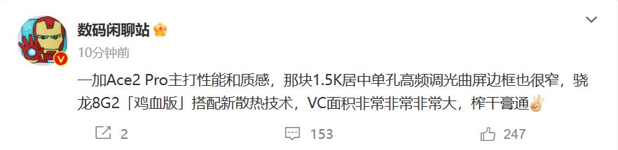 The OnePlus Ace 2 Pro, powered by the Snapdragon 8 Gen 2 “Chicken Blood Edition,” is said to focus on performance and design.