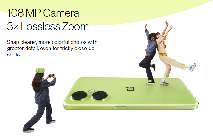 Judging by the images, Nord CE 3 Lite features a triple camera setup, but we only know about the main camera for now. OnePlus Nord CE 3 Lite’s main camera has a resolution of 108 MP and supports 3x native zoom, similar to how iPhone 14 Pro applies crop over 48 MP image and give native 2x zoom. Previous model, Nord CE 2 Lite has 64 MP main camera, the remaining cameras of Nord CE 3 Lite is still unknown for now.