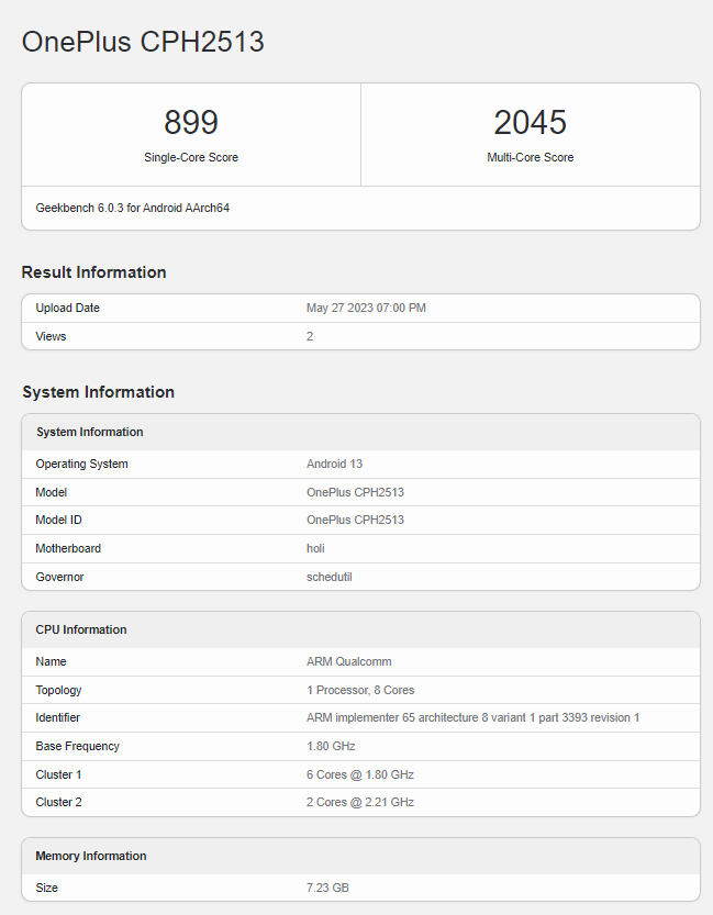 OnePlus Nord N30 5G essentially shares the same specifications as OnePlus Nord CE 3 Lite. Initially, it was spotted on the Google Play Console and now the Geekbench result revealts the phone’s model number with “CPH2513”.