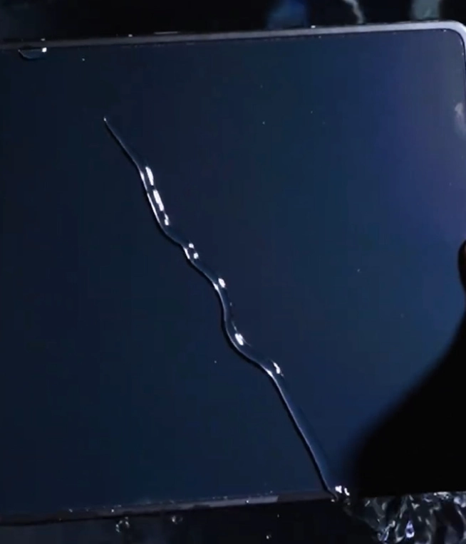 In the teaser clip, the foldable was shown being taken out of water with both the front and inner displays active. The crease appeared almost invisible even under light reflection — a major improvement if the real-world performance matches the demo.
