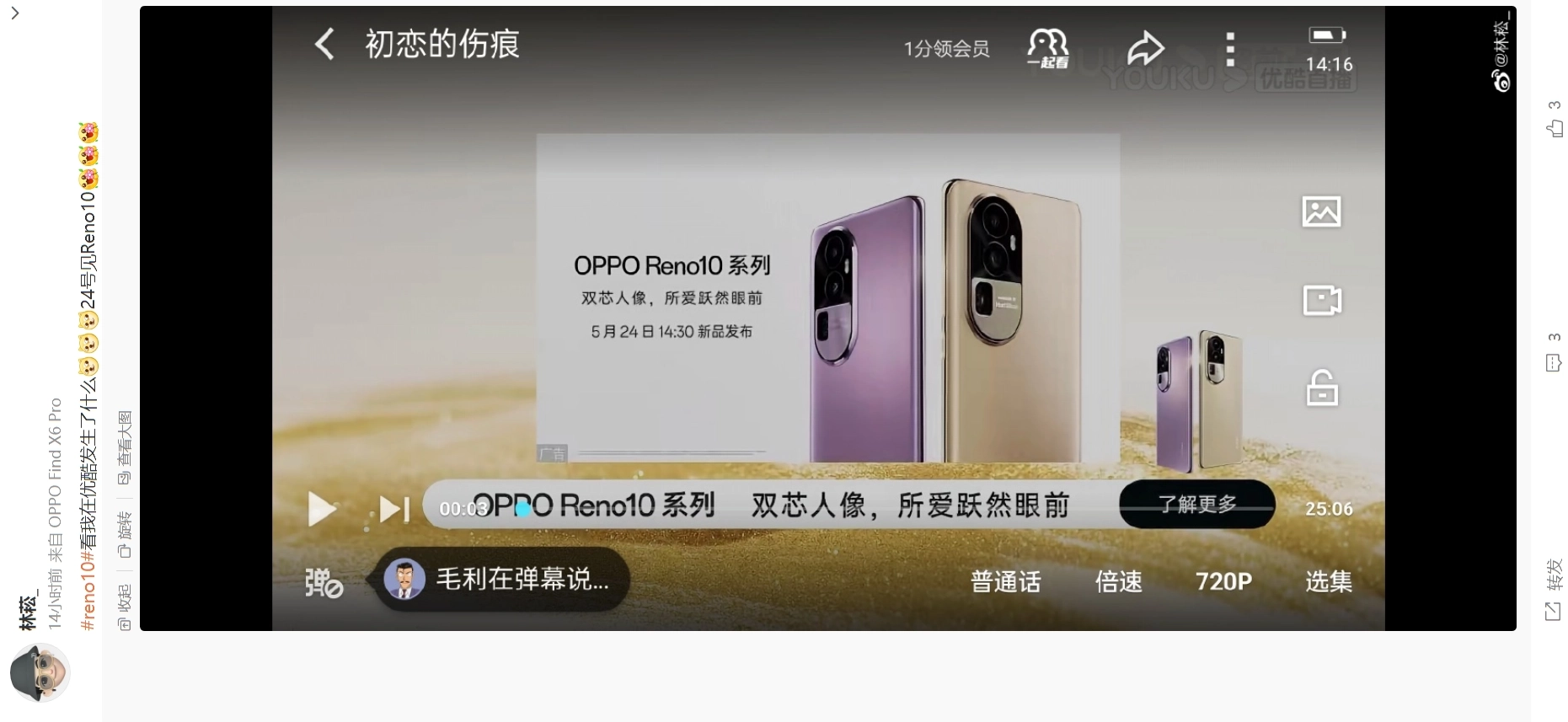 On Weibo shared an image revealing the promotional poster for the OPPO Reno10 series. The poster indicated that the new product would be released on May 24th at 14:30 in a film and television application. We already found this news in Turkey a week ago and reported on it.