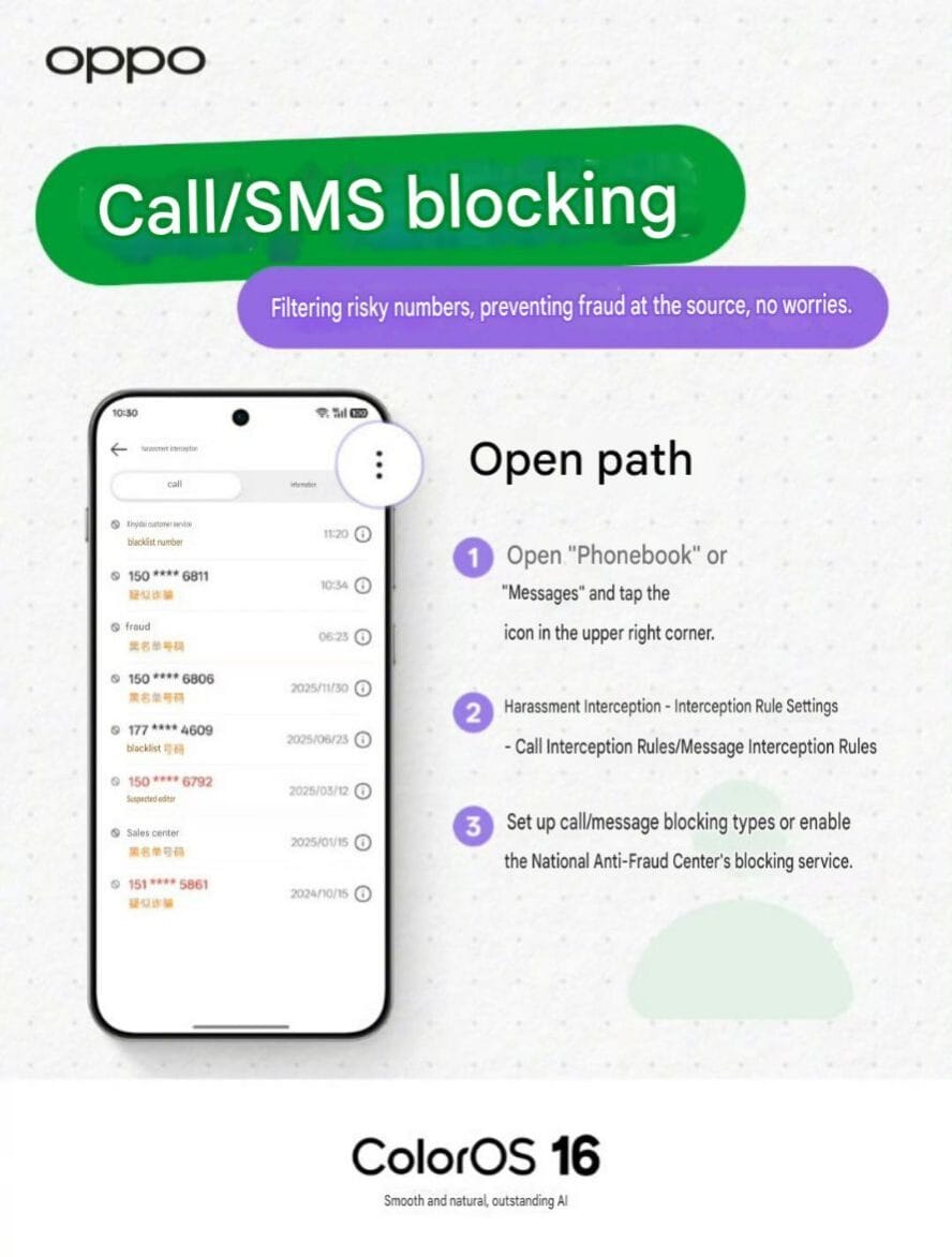 Alongside the update, OPPO has also introduced a ColorOS Anti-Fraud Setup Guide to help users better protect their devices. The guide covers several security tools available in ColorOS, including AI call fraud prevention, call and SMS blocking, risky app blocking, payment protection, and the ColorOS confidential computing space.