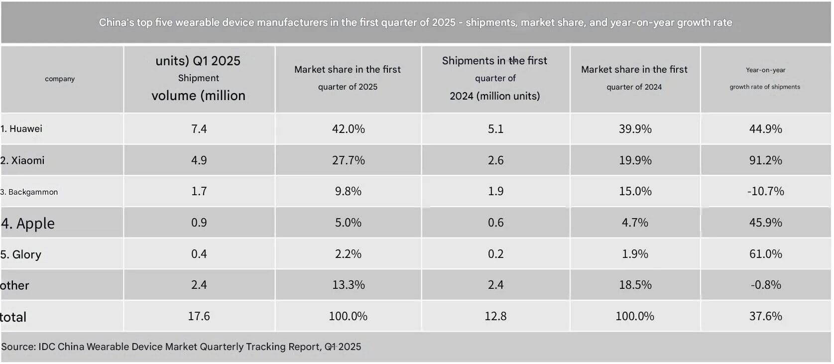 No primeiro trimestre de 2025, a linha de produtos vestíveis da Xiaomi registrou um crescimento significativo nas remessas globais, com um desempenho particularmente forte na China, onde a empresa ultrapassou seus cinco principais concorrentes. Esse sucesso regional serviu como motor principal para a expansão da Xiaomi nos mercados globais.