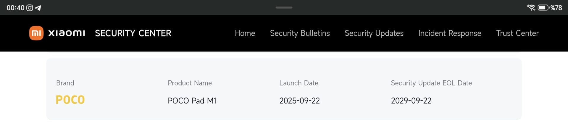 POCO Pad M1 on Xiaomi’s software support page