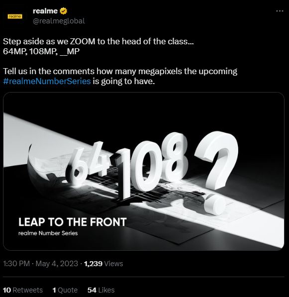 realme 11 series is set to be released globally very soon, as indicated by the initial teaser post shared by the official realme global Twitter account. The post highlights the cameras of realme 11 series.