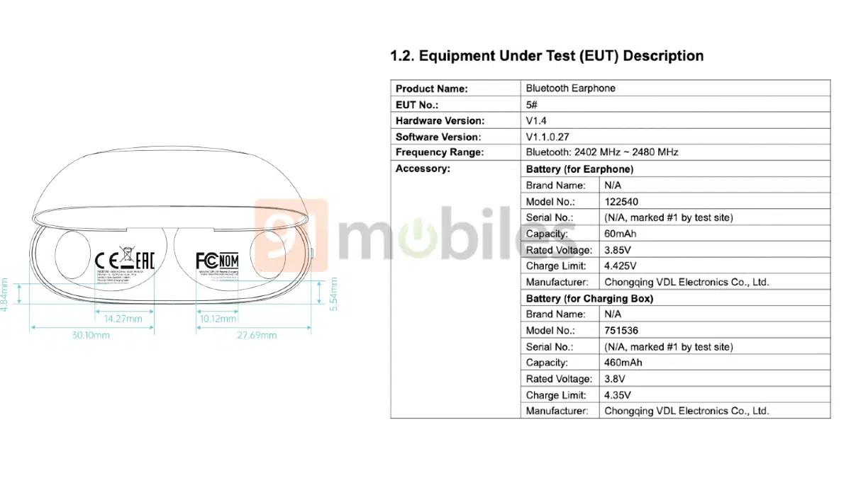 The recently issued FCC certificate does not provide too much detail on the technical specifications of new TWS earphone but we believe it indicates that realme Buds Air 5 Pro will be launched imminently. The noteworthy aspect of this new certification is the revelation of the battery capacity, realme Buds Air 5 Pro’s charging case houses a 460 mAh battery and each earphone features a tinier 60 mAh battery.
