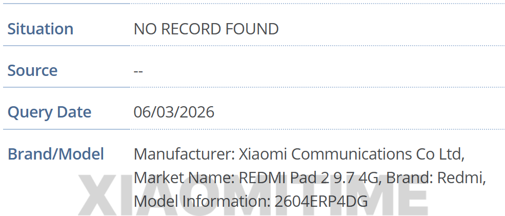 The GSMA database reveals several model numbers associated with the REDMI Pad 2 9.7, confirming its availability in multiple regions including China, India, and Global markets. The device is identified under model numbers 2604ERP4DG, 2604ERP4DC, and 2604ERP4DI, indicating a coordinated release strategy across all major Xiaomi sales hubs. This move suggests that Xiaomi is targeting the mid-range education and media consumption market with a highly portable 9.7-inch panel.