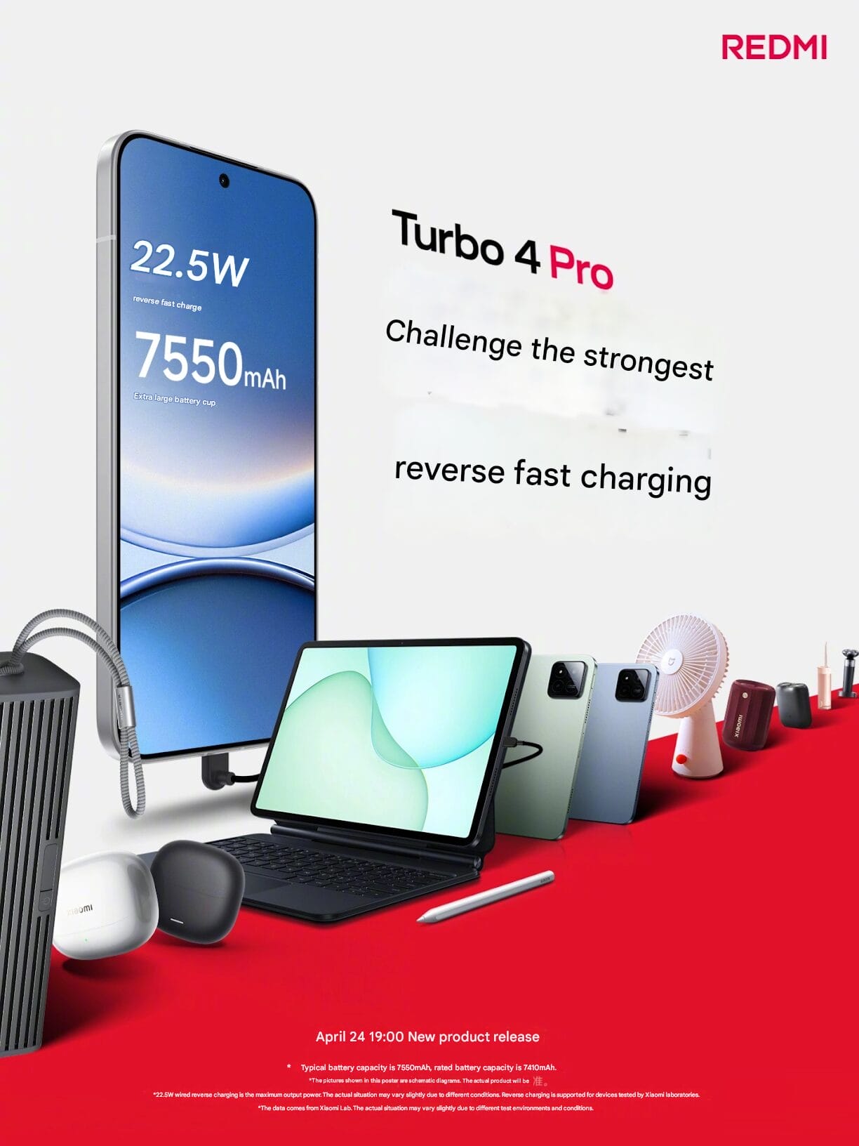 Im Rahmen der Feierlichkeiten zu seinem 15-jährigen Bestehen hat das Unternehmen ein weiteres innovatives Feature seines kommenden Redmi Turbo 4 Pro-Geräts enthüllt. Das mit Spannung erwartete Gerät, das am 24. April um 19:00 Uhr auf den Markt kommt, wird zusätzlich zu seinem ohnehin schon großen 7550-mAh-Akku über eine erstaunliche 22,5-Watt-Schnellladefunktion verfügen. In der offiziellen Erklärung des Unternehmens heißt es, dass diese Rückwärtsladefunktion nicht nur zum Aufladen von Uhren, Lautsprechern und Kopfhörern geeignet ist, sondern auch zum Aufladen von anderem Zubehör in ihrem Ökosystem. Das macht das Turbo 4 Pro zu einer Art Kraftwerk in deiner Tasche.