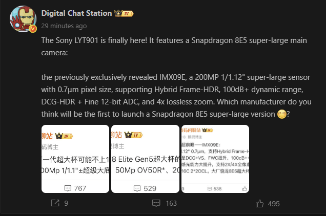 O vazamento destaca especificamente os recursos do Sony LYT901, posicionando-o como uma solução premium para futuros dispositivos principais. Junto com o LYT901, também surgiram detalhes sobre o impressionante sensor IMX09E. Esse hardware representa um grande salto na tecnologia óptica, projetado para capturar detalhes intrincados mesmo em ambientes desafiadores.