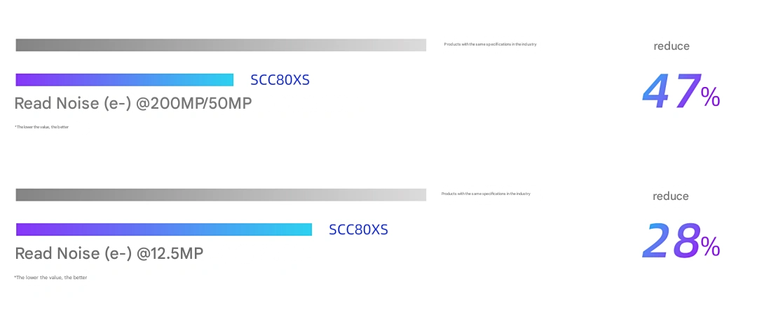 From a technical standpoint, the SCC80XS offers a large 1/1.28-inch sensor size and incorporates advanced features such as PixGain HDR, SFCPixel-SL, and AllPix ADAF. These technologies enable high frame rate and high dynamic range video capture, supporting main, telephoto, and ultra-wide configurations. The sensor stands out for its low read noise—0.7e- in 200MP and 50MP modes, which represents a 47% reduction compared to peers in the industry. Even in 12.5MP mode, read noise remains low at 1.2e-, ensuring excellent clarity and detail.