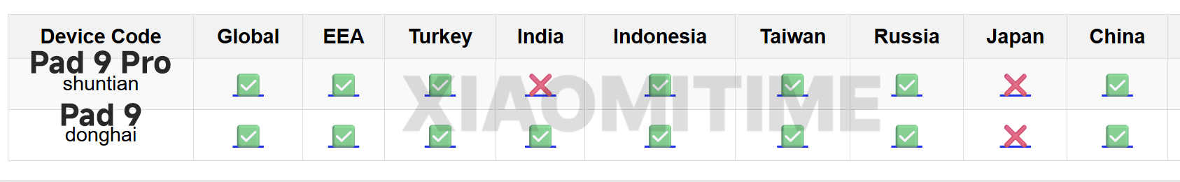 A escolha do chip nesse dispositivo implica que a Xiaomi favorece a eficiência e o desempenho em sua variante padrão. Ao contrário da variante Pro, o Xiaomi Pad 9 estará disponível em todas as regiões, incluindo a Índia, mas não estará disponível no Japão.