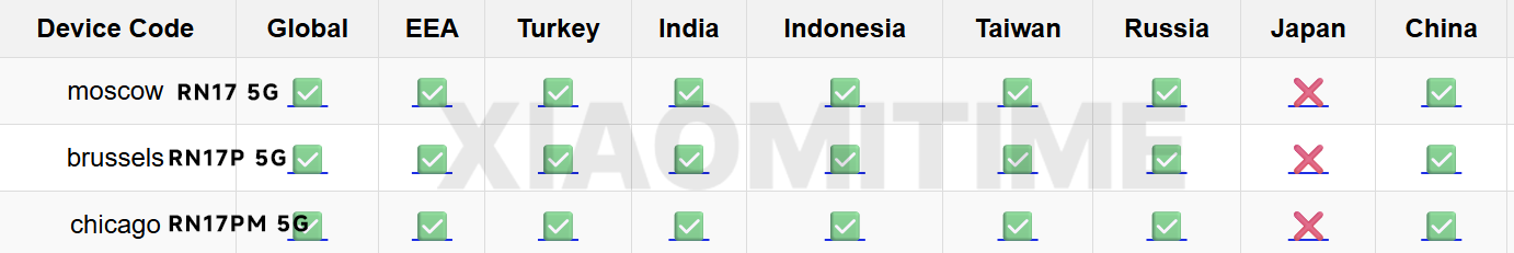 Juntamente com os codinomes, surgiu uma lista enorme de números de modelos, revelando variantes globais (G), indianas (I), chinesas (C) e outras variantes regionais atualmente em desenvolvimento: