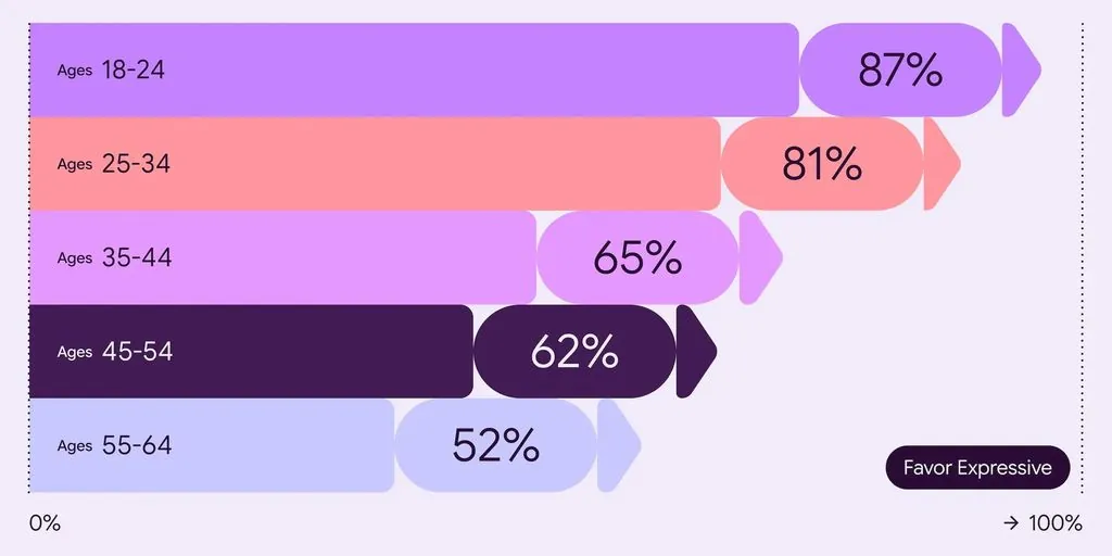 Die Google-Studie hat ergeben, dass die Nutzerinnen und Nutzer ausdrucksstärkere Designs bevorzugen, die die wichtigsten Elemente hervorheben und eine bessere Bedieneffizienz ermöglichen.