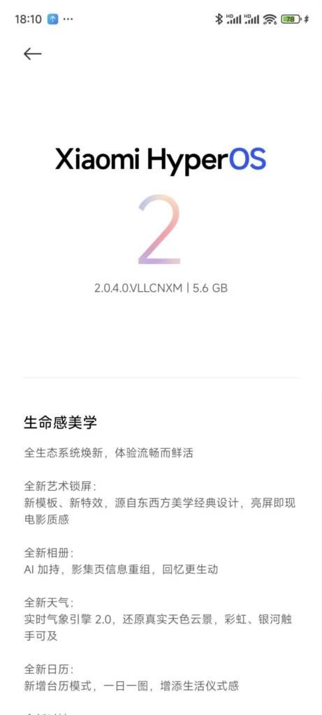 Xiaomi 13 Lite HyperOS 2 Update Details