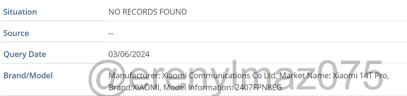 - 2407FPN8EG: It’s the Xiaomi 14T Pro. The 14T Pro is the highest version in the 14T series and will reportedly have more upgraded features, including a better camera setup and a more powerful processor.