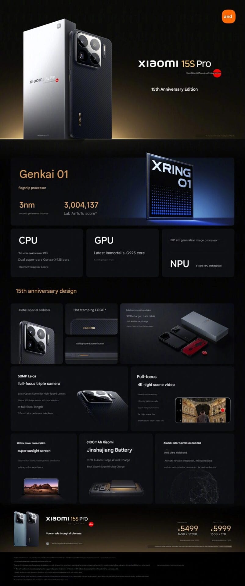 Auf der majestätischen 15th Anniversary Product Launch Conference hat Xiaomi sein neuestes Kraftpaket vorgestellt – das Xiaomi 15S Pro, ein Flaggschiff der nächsten Generation, das auf der Plattform des Xiaomi 15 Pro basiert. Das innovative neue Smartphone ist mit dem bahnbrechenden XRING O1-Prozessor ausgestattet, Xiaomis hauseigenem 3nm-Flaggschiff-SoC, der für unübertroffene Leistung und Effizienz sorgt. Das 15S Pro ist ab sofort in China zu einem Preis von rund 760 USD (5.499 ¥) erhältlich.