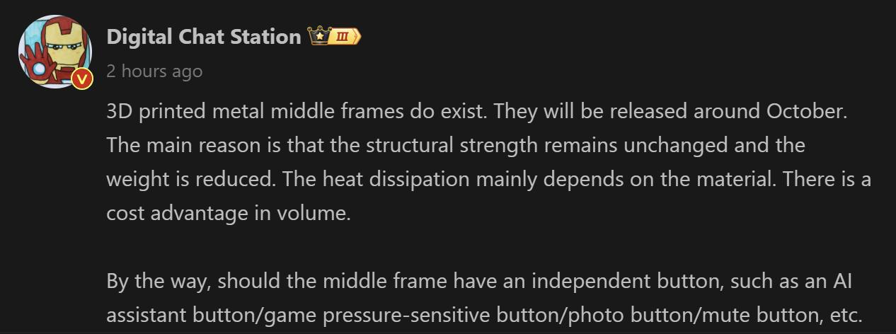 A Xiaomi está prestes a revolucionar o setor de smartphones com seu próximo modelo principal, o Xiaomi 16 Pro, a ser lançado em outubro de 2025. Conforme revelado recentemente pelo blogueiro Digital Chat Station, esse novo modelo contará com uma estrutura intermediária de metal impressa em 3D que tornará o smartphone mais leve sem comprometer a resistência estrutural. Esse design não só visa a tornar o smartphone mais leve e mais eficiente no gerenciamento térmico, mas também visa a reduzir os custos de fabricação.