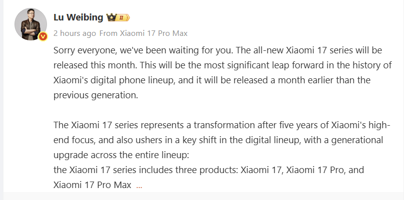The Xiaomi 17 series will debut three new models: Xiaomi 17, Xiaomi 17 Pro, and Xiaomi 17 Pro Max. Each model features the new Snapdragon 8 Elite Gen 5 platform, making Xiaomi the first globally to use this cutting-edge processor—ensuring best-in-class performance.