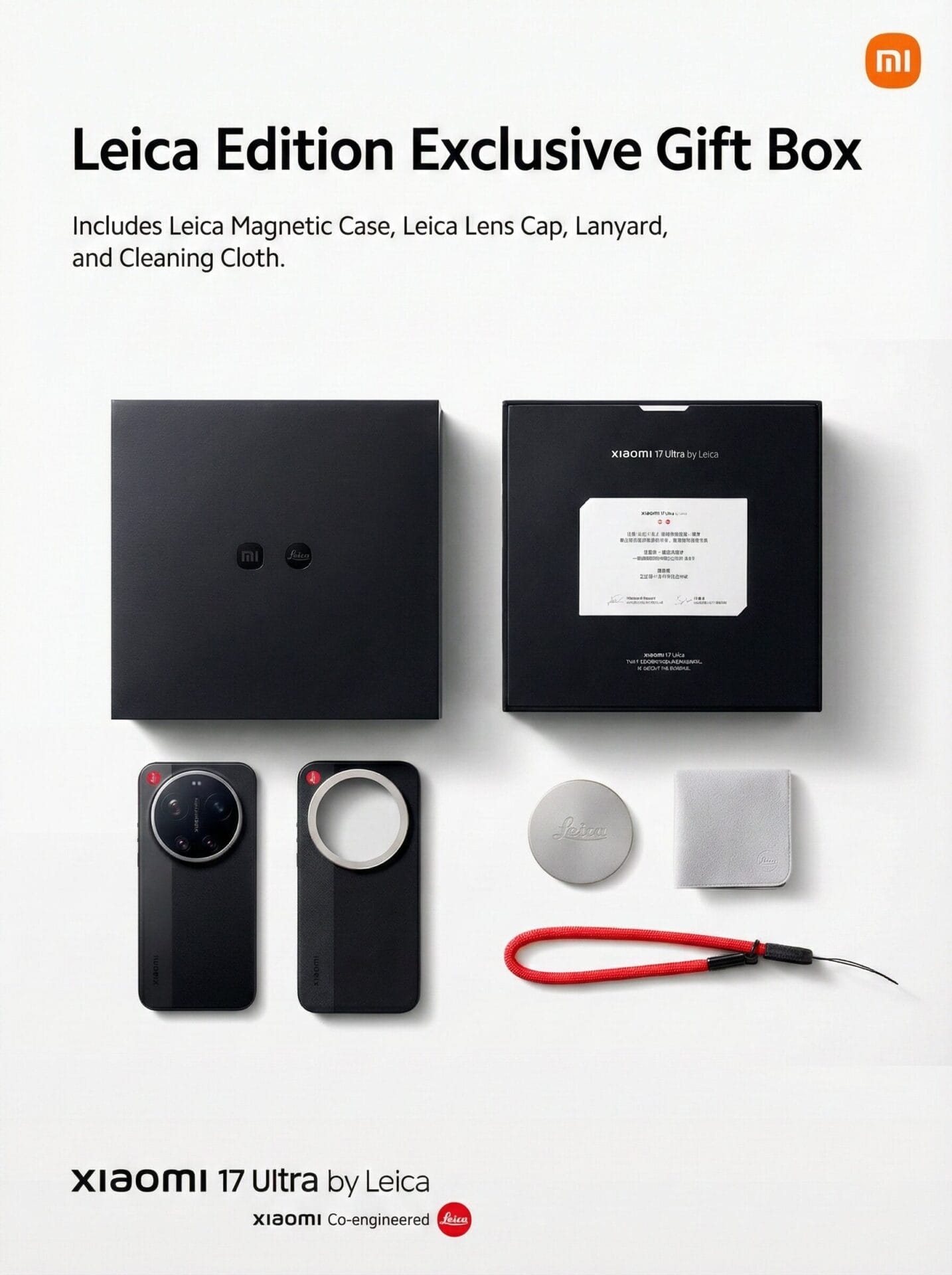 Juntamente com sua oferta padrão, a empresa também lançou o que chamou de edição especial globalmente conhecida como “Leitzphone by Xiaomi“, enquanto na China foi chamada de “Xiaomi 17 Ultra Leica Edition”. Esse design especial ou de edição limitada é caracterizado por seu rótulo vermelho inspirado na Leica, seu anel de zoom e sua saliência no meio do quadro inspirada na fotografia. Ele é voltado para aqueles que acreditam na “unidade mente-corpo” oferecida pelas câmeras.