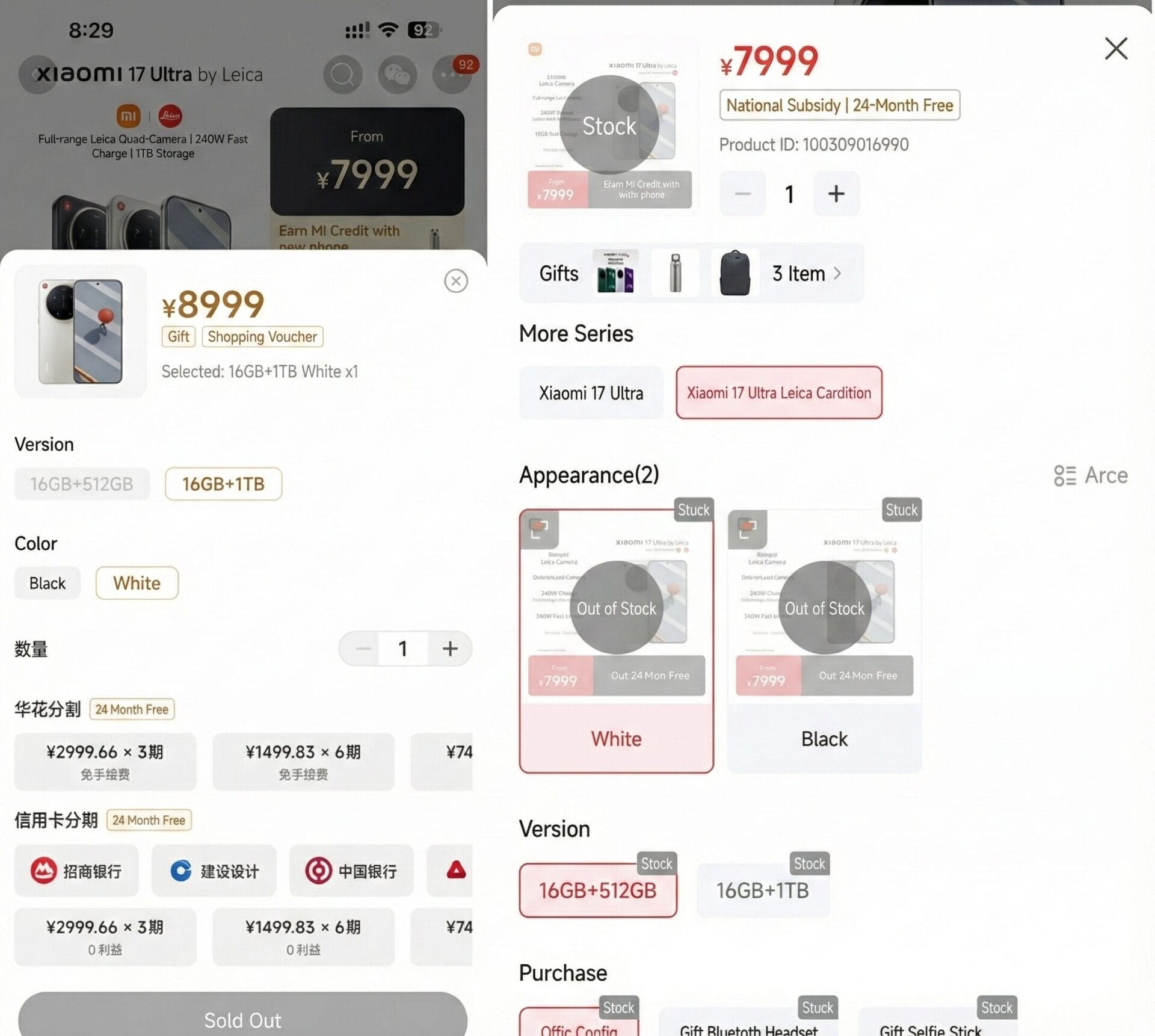 O Xiaomi 17 Ultra Leica Edition fez sua estreia com um preço inicial de 7.999 CNY, o que equivale a aproximadamente US$ 1.115. Com esse posicionamento, pode-se supor que o estoque não sairá das prateleiras muito rapidamente, mas não foi isso que aconteceu quando ele foi lançado inicialmente.