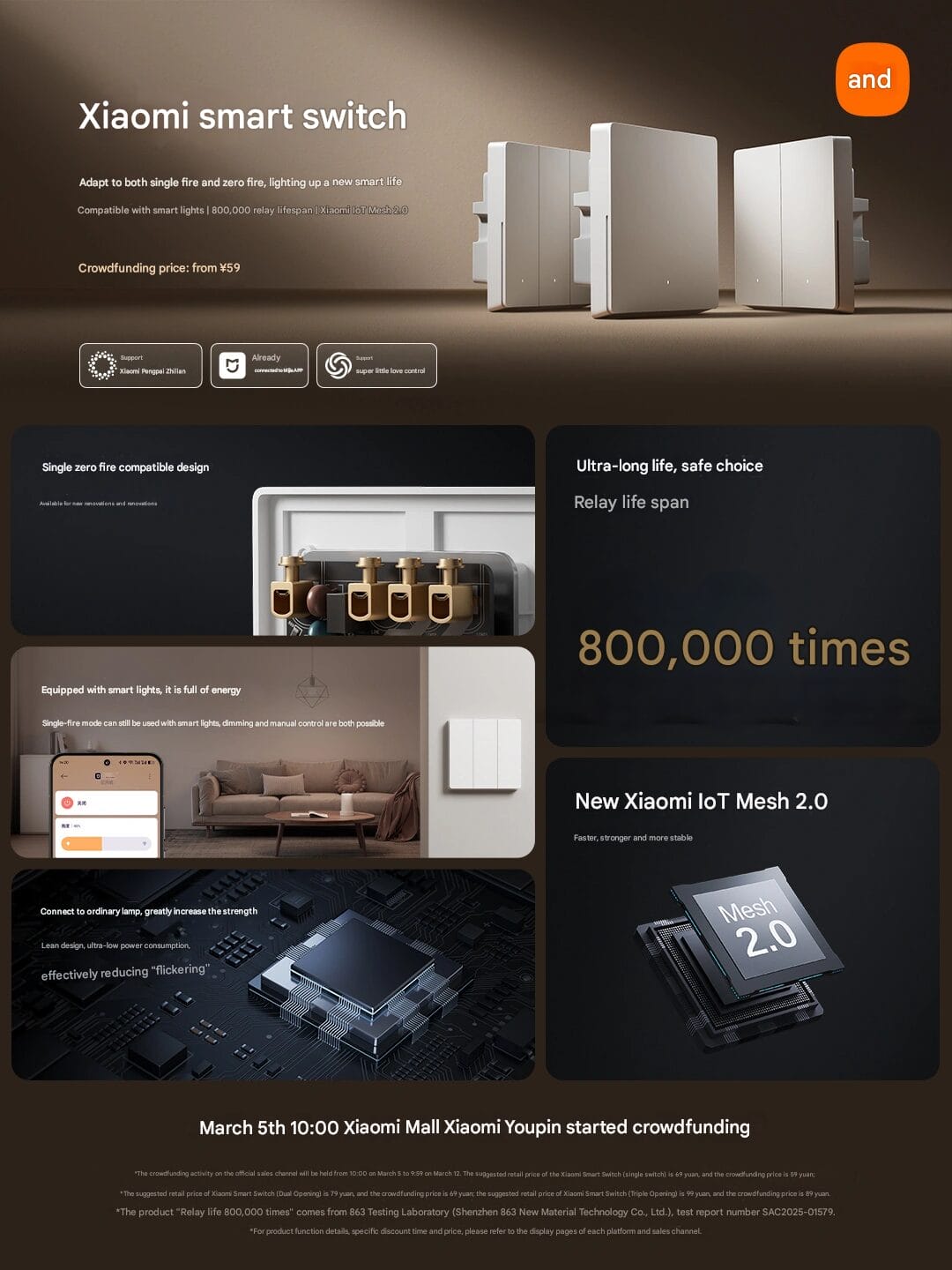 Xiaomi, 5 Mart’ ta 59 yuan (8 USD) fiyatla kitlesel fonlamaya sunulacak olan yeni akıllı anahtarının lansmanını resmen doğruladı. Mükemmel uyumluluk ve gelişmiş dayanıklılık için tasarlanan yeni anahtar, Xiaomi’nin büyüyen akıllı ev ekosistemine harika bir katkı sağlıyor. Anahtar, yeni kurulumlar ve ev tadilatları ile uyumlu, tek sıfırlı yangın uyumlu bir tasarıma sahiptir. Xiaomi IoT Mesh 2.0 ile uyumludur ve daha verimli ve istikrarlı bir bağlantı sunar. Röle ömrü 800.000 döngüyü aşıyor ve günlük kullanım için uzun süreli dayanıklılık sunuyor. Xiaomi’nin akıllı ev ürün yelpazesi genişlemeye devam ederek modern evler için daha akıllı ürünler sunuyor.