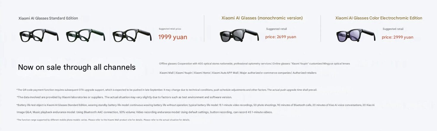 Atualmente, esses óculos inteligentes estão disponíveis exclusivamente na China, com preços que variam de US$ 275 (modelo padrão) a US$ 413 (edição com lentes coloridas). Até o momento, a Xiaomi não anunciou planos para disponibilidade internacional.