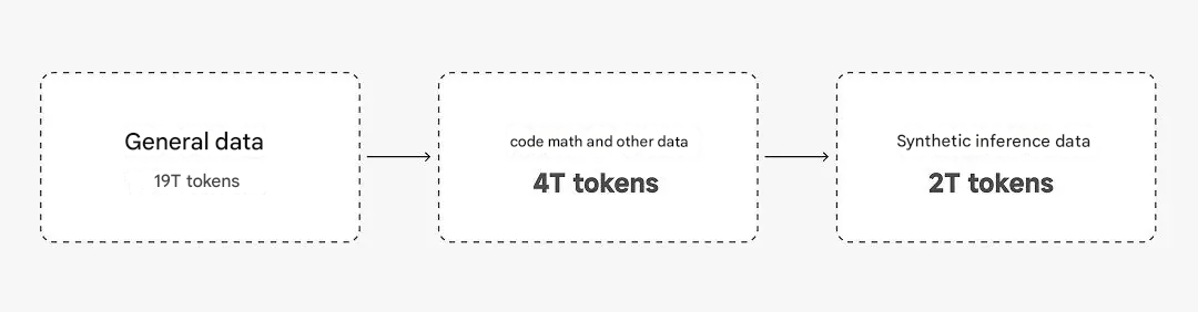 - Synthetische Anreicherung: Generierung von ca. 200B Token von Argumentationsdaten auf Expertenebene
