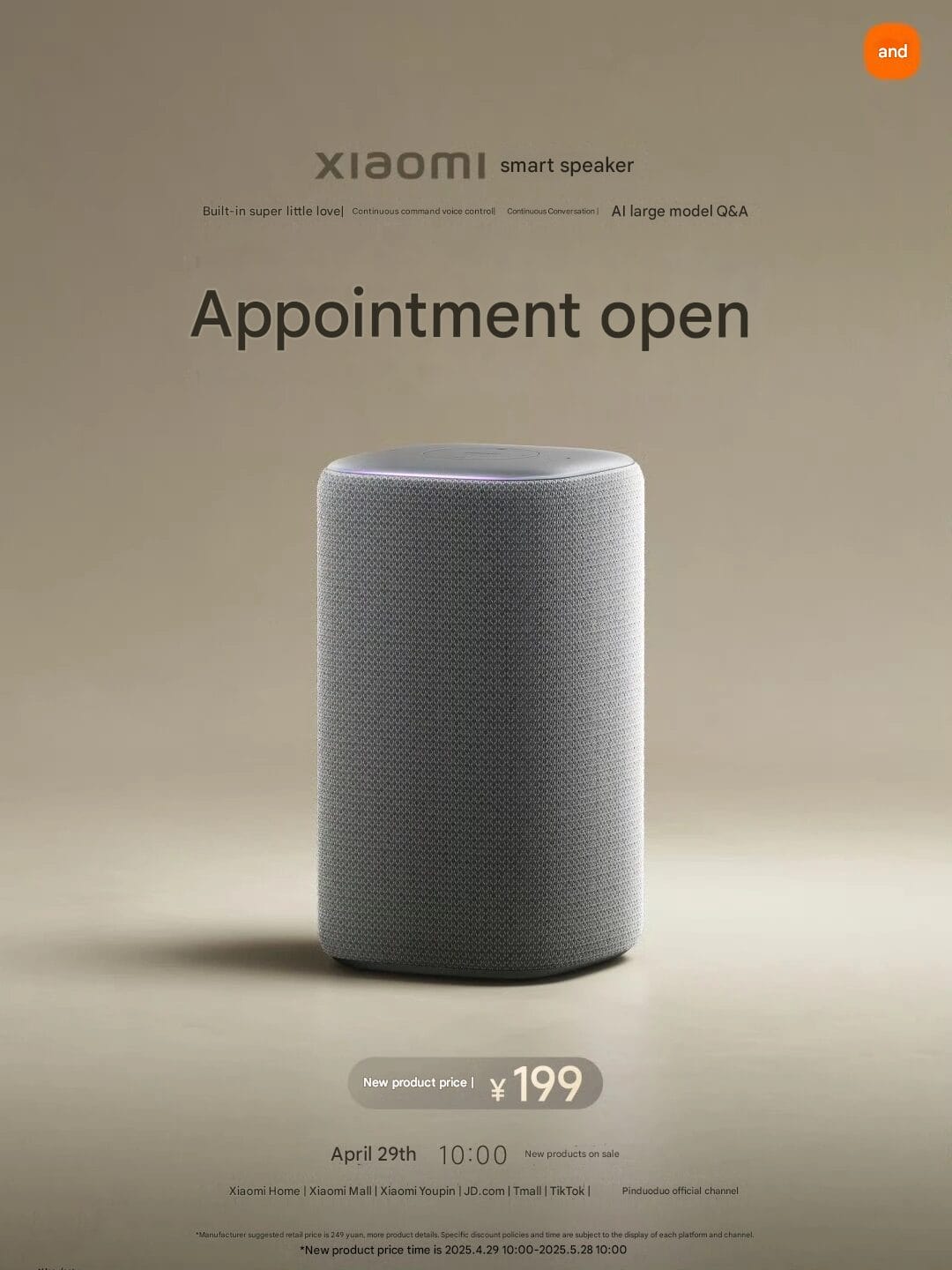 Xiaomi hat seinen neuesten Xiaomi Smart Speaker zum Preis von nur 199 Yuan (~$27) offiziell vorgestellt, der ab sofort in der Xiaomi Mall vorbestellt werden kann. Das Gerät wird am 29. April um 10:00 Uhr offiziell in den Verkauf gehen und bietet erschwingliches Smart Home Management mit großartigen Funktionen. Der neue Lautsprecher verfügt über einen eingebauten Super XiaoAi-Assistenten, der eine einfache Sprachsteuerung mit Xiaomis Smart Ecosystem ermöglicht. Im Gegensatz zu seinem Gegenstück, das 299 Yuan kostet, ist der neue Lautsprecher kompakter und preiswerter. Du kannst dir auch andere smarte Geräte auf unserer Xiaomi Smart Home Seite ansehen.