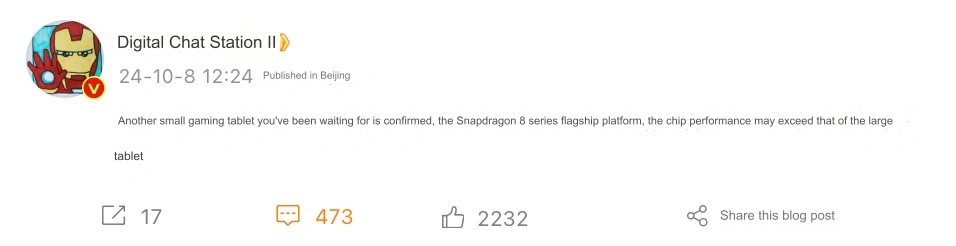 Der Blogger “Digital Chat Station” kündigte heute ein mysteriöses E-Sport-Tablet an, das für eine ungenannte Marke entwickelt wird und die Chips der Snapdragon 8-Serie von Qualcomm verwendet. Die unmittelbaren Spekulationen in den Medien konzentrierten sich auf Xiaomi, wo man davon ausgeht, dass es sich um ein neues Produkt von Redmi handelt, wahrscheinlich mit dem Snapdragon 8s Gen 3 Prozessor.