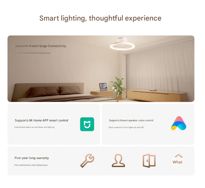 Derzeit unterstützt dieses Modell Xiaomi HyperConnect, wodurch es sich nahtlos mit der Mi Home App verbinden lässt. Die Nutzer/innen können eine individuelle Aufwachbeleuchtung, Schlafroutinen und stimmungsspezifische Voreinstellungen konfigurieren. Außerdem gibt es einen Ein-Klick-Nachtlichtmodus und spezielle Profile zum Lesen, Entspannen und konzentrierten Arbeiten.