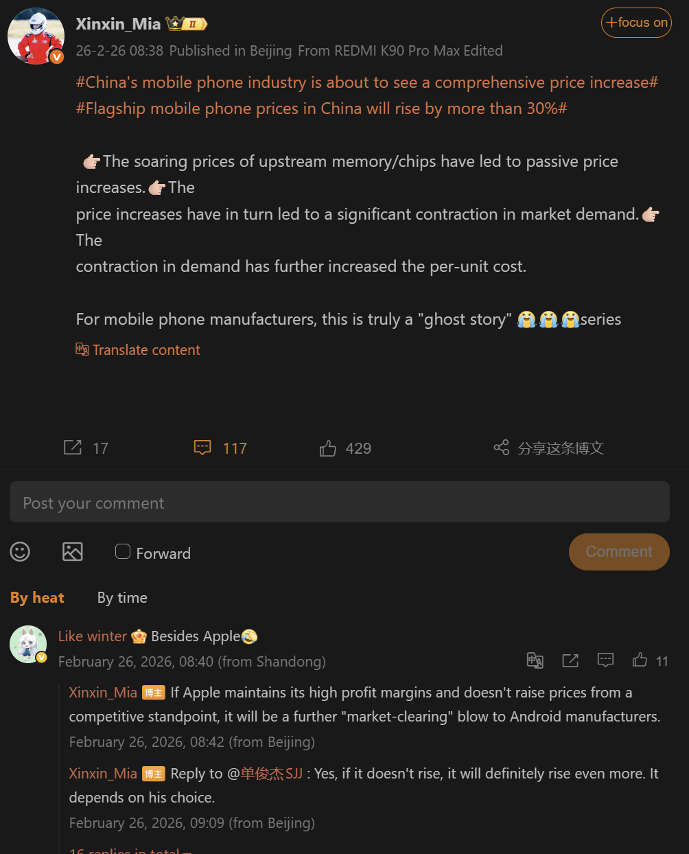 O gerente de produtos da REDMI, Hu Xinxin, confirmou hoje que o aumento dos custos de chips de memória upstream aumenta diretamente as despesas de fabricação de telefones celulares downstream. Essa situação cria um ciclo desafiador para os preços dos dispositivos, levando a custos mais altos para os consumidores em todo o ecossistema de smartphones da Xiaomi. Conforme indicado em relatórios anteriores do setor, o setor chinês de smartphones enfrentará um aumento abrangente de preços em 2026, impulsionado por mudanças implacáveis nos componentes de semicondutores. Os compradores que planejam adquirir novos dispositivos principais devem prever ajustes significativos no mercado a partir de março deste ano.