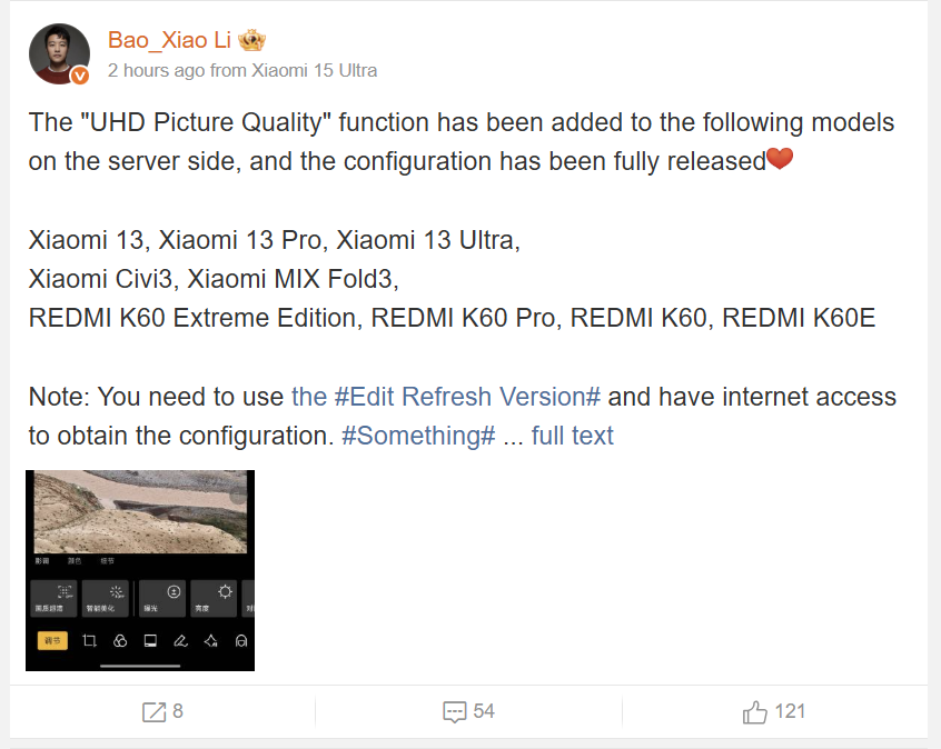 Xiaomi delivers ultra HD photo enhancement to old flagship devices
