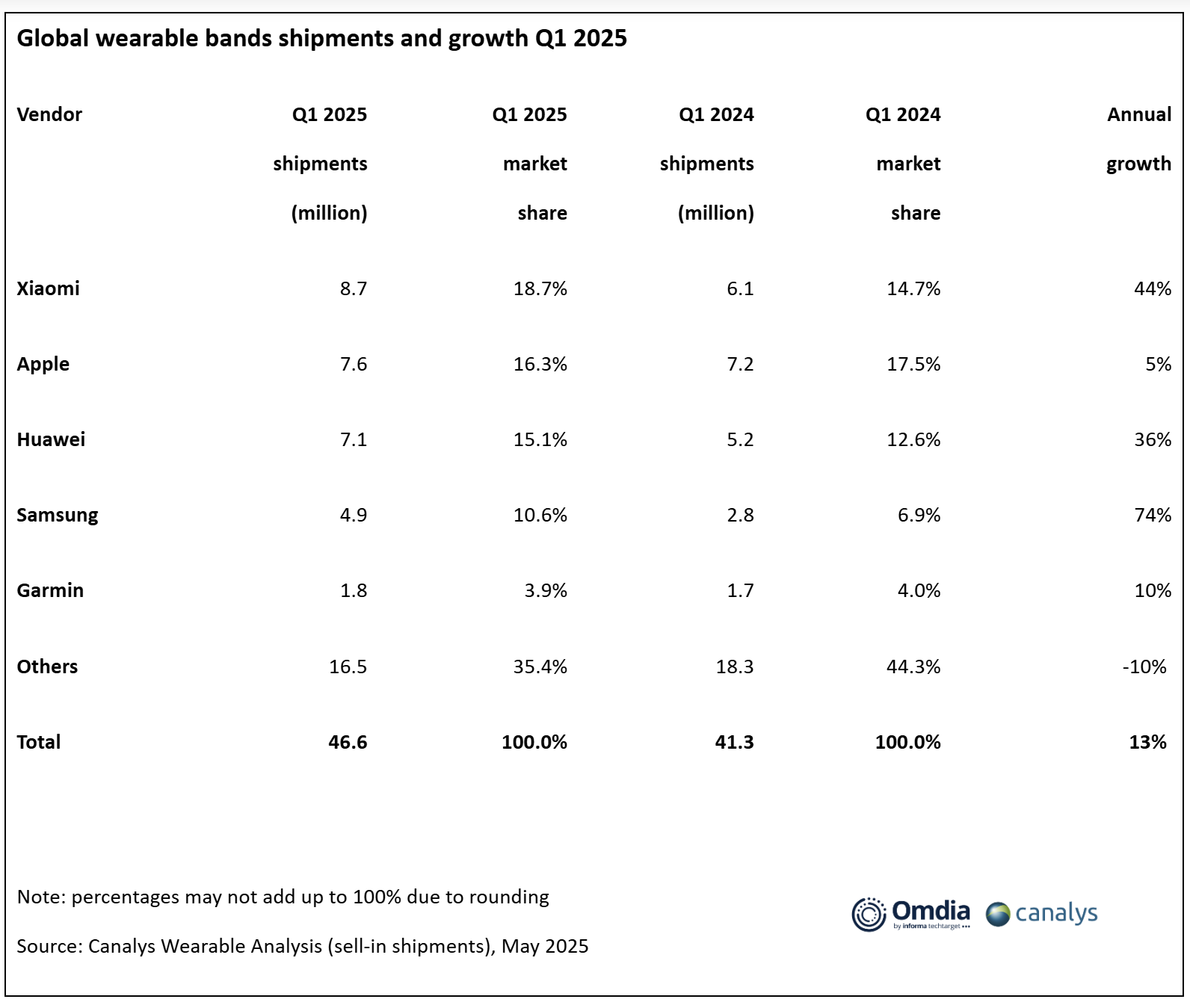 Mit einem starken Comeback hat Xiaomi seine Position als weltweit führender Hersteller von Wearables im ersten Quartal 2025 zurückerobert, wie aus einer aktuellen Statistik von Canalys, einem Teil von Omdia, hervorgeht. Mit einem erstaunlichen Wachstum von 44% im Vergleich zum Vorjahr lieferte Xiaomi 8,7 Millionen Wearables aus und lag damit vor Apple und Huawei. Dieses starke Wachstum ist auf eine sich erholende Nachfrage weltweit und ein robustes Produktportfolio zurückzuführen, das bei den Fans beliebte Produkte wie die Xiaomi Smart Band-Reihe und die Xiaomi Watch 2 umfasst.