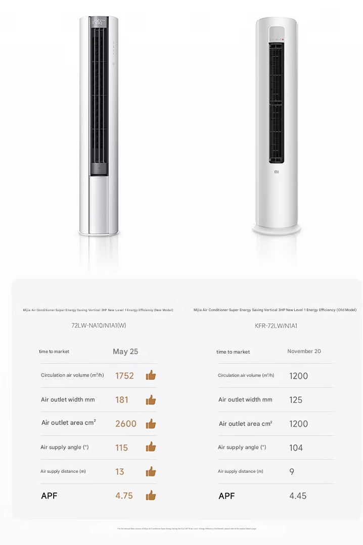 Die Mijia Super Energy Saving Vertical 3HP Klimaanlage bringt eine Reihe von wichtigen Neuerungen im Vergleich zu den Vorgängermodellen: