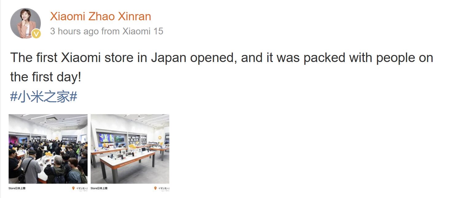Laut den Weibo-Posts von Xiaomi-Manager Zhao Xinran zog die Ladeneröffnung viele Menschen an, was die wachsende Popularität der Marke in Japan zeigt, wo sie die fünftbeliebteste Smartphone-Marke des Landes ist.