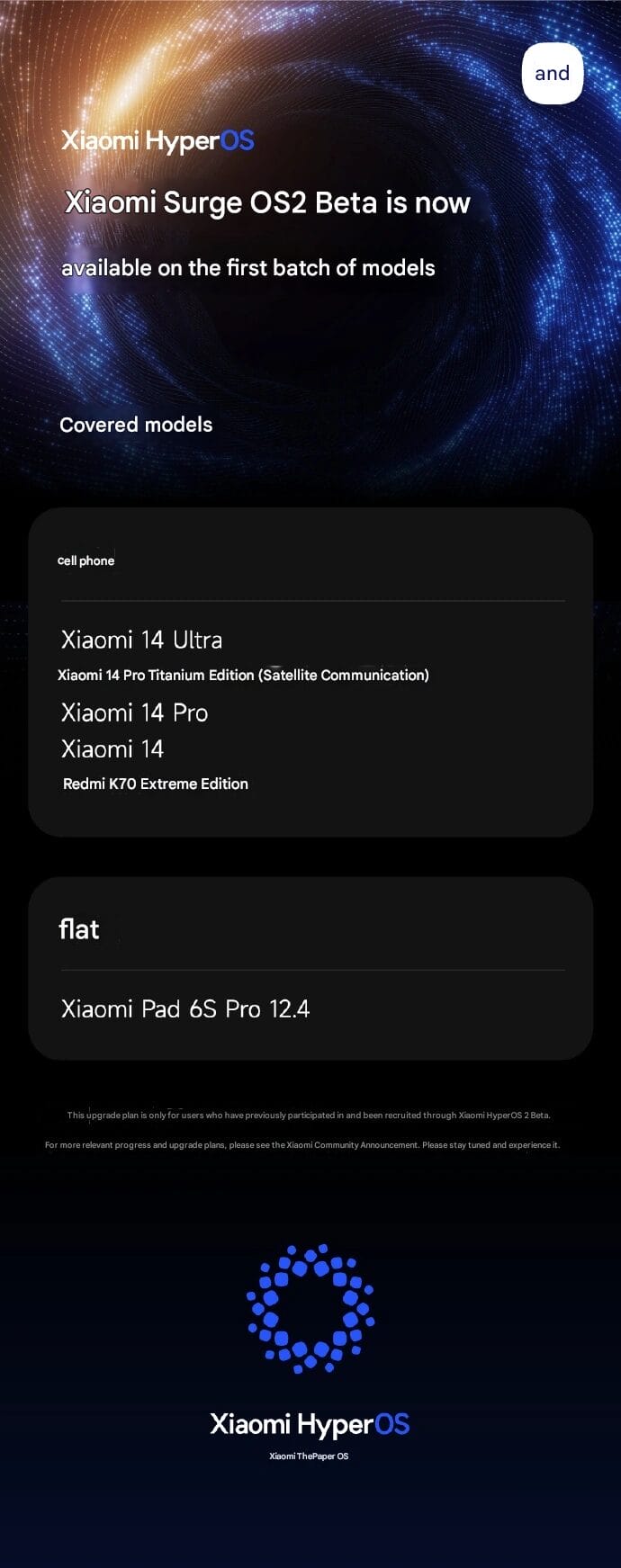 The following devices are currently receiving the HyperOS 2 Beta: