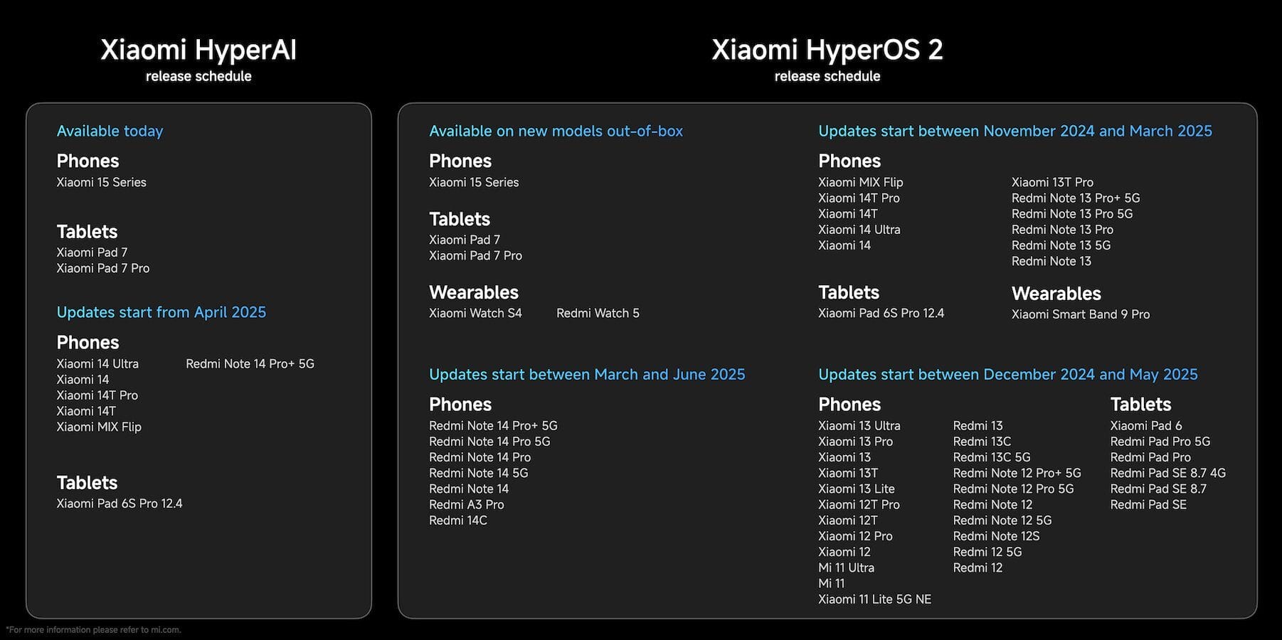 It is worth mentioning that a number of older devices have just received their last major update with HyperOS 2.0 and will no longer receive major updates. These include:
