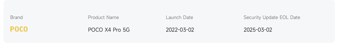 Da mesma forma, o Redmi Note 11 Pro 5G, o Redmi Note 11E Pro, o Redmi Note 11 Pro+ 5G e o POCO X4 Pro 5G também chegaram ao fim da vida útil com o HyperOS 1 baseado no Android 13. Os telefones de médio porte, que eram muito populares na época do lançamento por oferecerem excelentes especificações a preços acessíveis, não receberão mais atualizações na forma de patches de segurança.