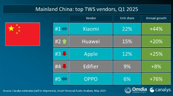 A Xiaomi alcançou um sucesso notável no mercado de fones de ouvido estéreo sem fio (TWS), garantindo a primeira posição na China continental com uma impressionante participação de mercado de 22% durante o primeiro trimestre de 2025. De acordo com o último relatório da Canalys, agora incorporado à Omdia, o domínio da Xiaomi reflete um impressionante crescimento de 44% ano a ano, superando os principais concorrentes, incluindo Huawei e Apple. Essa conquista demonstra a crescente influência da Xiaomi no segmento de acessórios de áudio, com base em seu sucesso com a integração do HyperOS e recursos de conectividade aprimorados em todo o seu ecossistema.