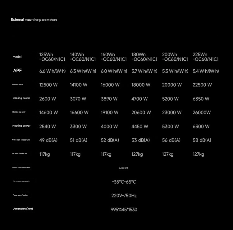 Jedes Modell hat bestimmte APF-Werte und Kühlkapazitäten, um unterschiedliche Installationsanforderungen zu erfüllen. Die doppelten Lüfterräder in Kombination mit den doppelten Luftauslässen sorgen für eine stabilere Verteilung des Luftstroms und machen das System so geeignet für die Kühlung mehrerer Räume in modernen Smart Homes.