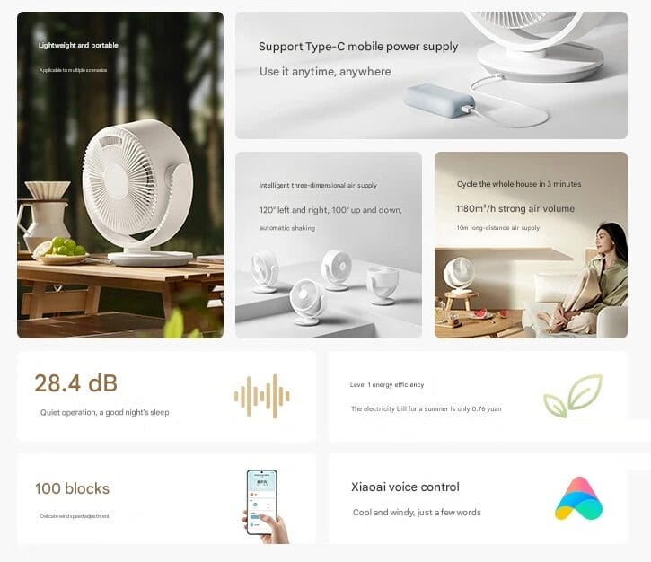 Ayrıca, vantilatör Xiaoai aracılığıyla sesle kontrol edilerek eller serbest kullanım ve akıllı sahne kontrolü sunar.