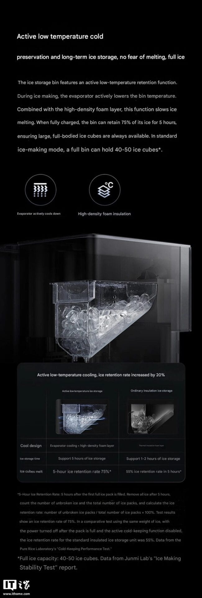 O Mijia Desktop Drink Maker Ice Edition emprega um sistema de fabricação de gelo de frequência variável, que oferece uma operação silenciosa de apenas 35 dB. Para garantir um melhor desempenho, ele é equipado com duas ventoinhas de resfriamento de velocidade variável para uma dissipação eficaz do calor. Há dois modos de fabricação de gelo disponíveis: